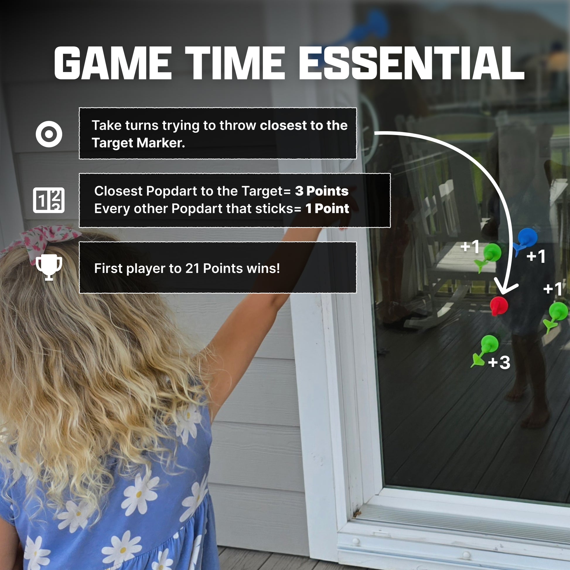 Take turns throwing Popdarts towards the target.
